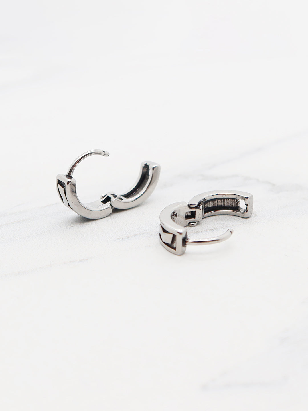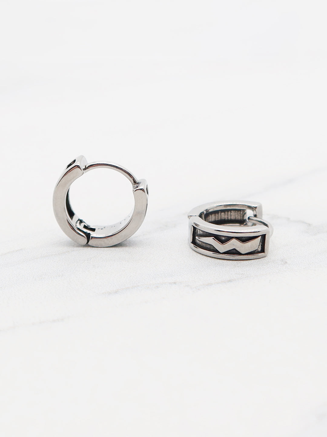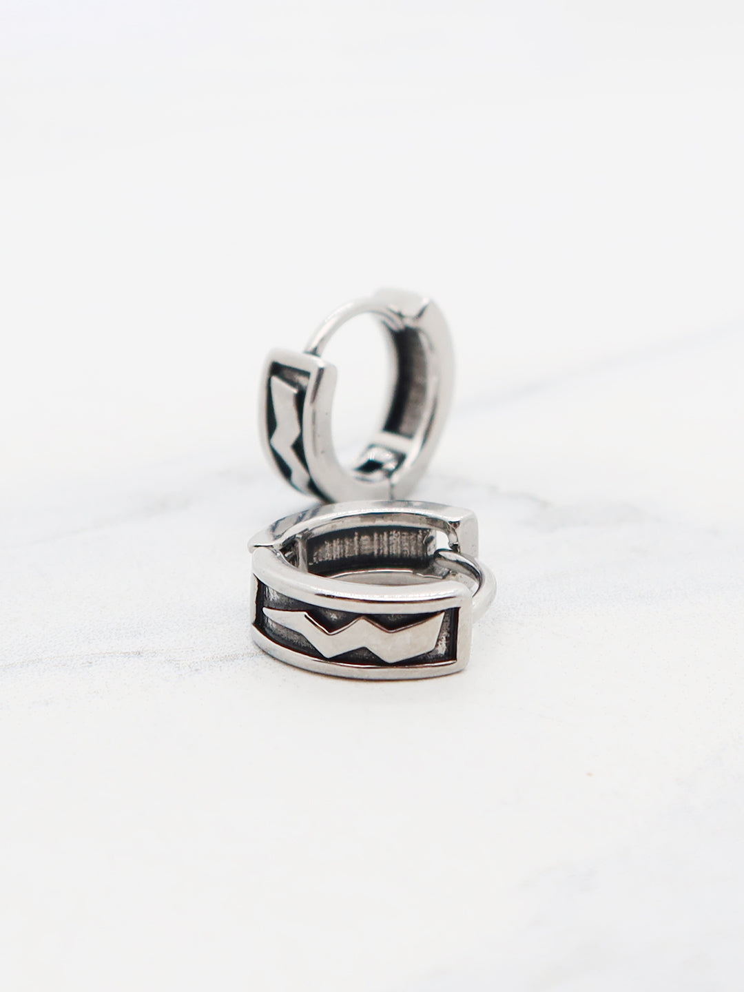 Make a bold statement with these titanium huggie hoops featuring a striking chevron pattern. The black inlay adds an extra edge, making them a standout accessory for those who love unique designs. Despite their bold look, these hoops are incredibly lightweight and hypoallergenic, ensuring maximum comfort throughout the day. Whether you’re going for a street-style vibe or adding an alternative touch to your outfit, these earrings are the perfect addition to your collection.